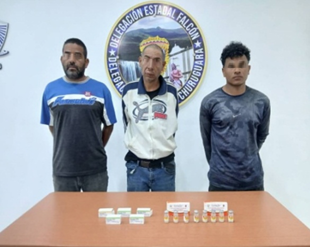 José Ramón López Cayama (30), Tony Ramón Hernández Lucena (49) y, Heber José Crespo Bracho (50), fueron detenidos por hurtar suero antiofídico e insulina del área de emergencias del Hospital Emigdio Castor Ríos de Churuguara en Falcón.