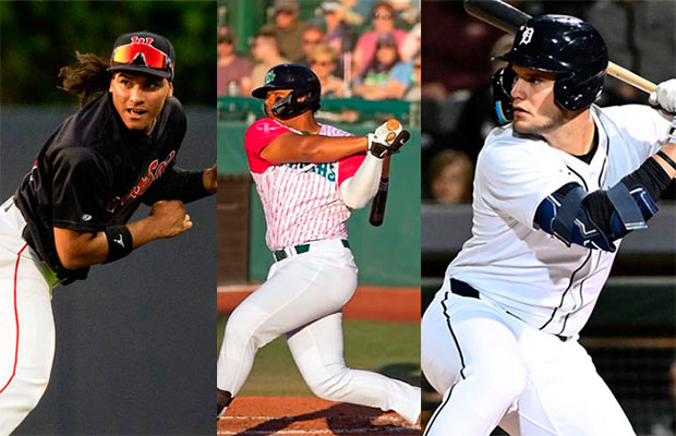 Tigres: Max Clark, OF (No. 1/MLB No. 7); Kevin McGonigle, SS/2B (No. 2/MLB No. 21); Josué Briceño, C/1B (No. 4/MLB No. 73).