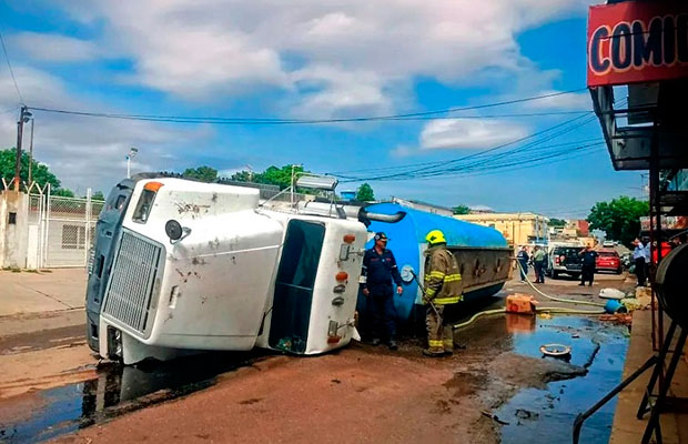 Un camión cisterna que transportaba 36 mil litros de agua perdió el control y volcó en el sector La Pastora, municipio Maracaibo, del estado Zulia.