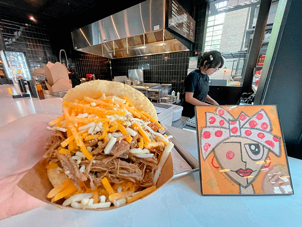 “Aunque ofrecemos patacones, tequeños, empanadas y hasta parrilla venezolana, el plato más pedido y apetecido por el mercado local es la arepa de pabellón. Los clientes de acá (Toronto) se vuelven locos por ese relleno de carne mechada, caraotas, tajadas y queso blanco. Completan el top de preferencias nuestra arepa rumbera, elaborada con conchino y queso amarillo; la pelúa, elaborada de carne mechada y queso amarillo local; y la siempre popular reina pepeada, llamada en inglés Polkadots Queen” comenta el propietario de la arepera de Waterworks, quienes además de ofrecer un suculento menú, se han dado a la tarea de traducir, definir y explicar el entorno cultural de cada plato.