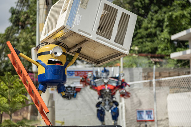 Un ‘minion’ sosteniendo un aire acondicionado, una guacamaya abriendo sus alas y un ‘Transformer’, son algunas de las esculturas que ha creado el venezolano Yhorby Ventura con material reciclado, como una forma de limpiar los riachuelos que desembocan en el Lago de Maracaibo, el más grande de tipo natural en Suramérica.