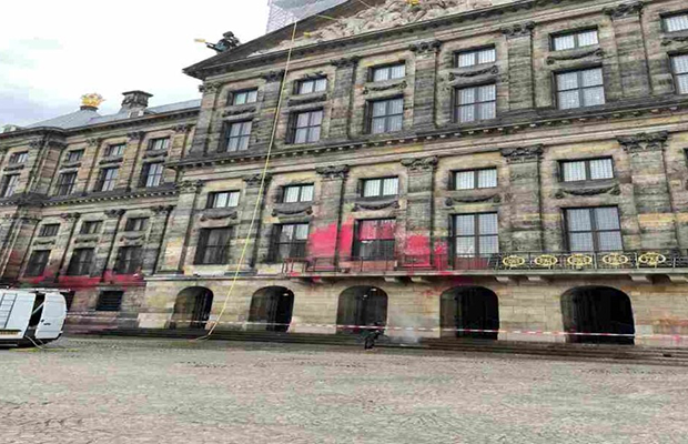 El Palacio Real de Ámsterdam, situado en la céntrica Plaza Dam, amaneció este martes cubierto con pintura roja y una frase contra Israel («Fuck Israel») pintada en su fachada, en una acción reivindicada por el grupo activista contra la ocupación de Palestina “Palestine Action NL” y que ha sido calificada por la alcaldesa Femke Halsema como “escandalosa e inaceptable”.