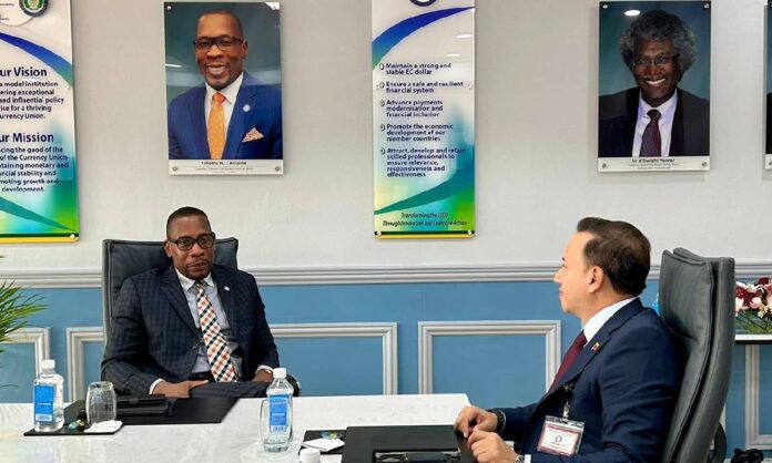 Durante su estancia en San Cristóbal y Nieves, Li Causi sostuvo una reunión con el gobernador del Banco Central del Caribe Oriental, Timothy Antoine, donde las autoridades analizaron la situación económica actual de la región y revisaron las previsiones financieras para las naciones del Caribe.