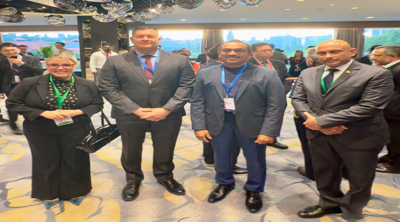 La delegación venezolana conformada por el viceministro de Transporte Aéreo venezolano, G/D Freddy Valdemar Borges Flores, y la embajadora Jessica María López Piña, participaron en el primer Simposio Global de Aviación y Marítimo, celebrado en la República de Singapur.