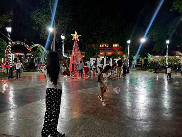 La alegría y la risa de los pequeños de la casa jugando en medio de la plaza Ribas, contagian a los presentes, quienes disfrutaron de un rato agradable en familia en estas navidades.
